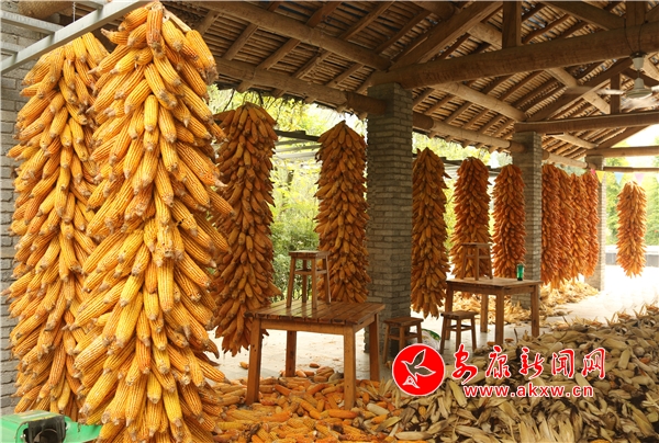 黃澄澄的玉米掛滿房前屋后。記者將這一場景迅疾抓拍,成就了“金秋豐收季”又一作品。