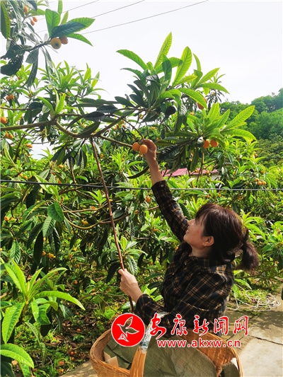 本網(wǎng)訊(記者?唐正飛)立夏過后,藍(lán)天白云下,一湖碧水倒映著湖畔的白墻黛瓦、花紅柳綠,一只小船劃過湖面,一層層碧波擴(kuò)散開來,一顆顆金果隨波而動,點(diǎn)綴著瀛湖的碧水青山。經(jīng)過村民多年的栽培,漢濱區(qū)瀛湖鎮(zhèn)清泉枇杷成為了此時(shí)本地應(yīng)季水果的代名詞,萬綠叢中的金果讓村民笑臉更加燦爛。