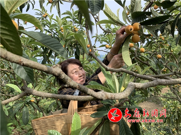 和往年相比,今年的枇杷并不繁密。村民張鳳琴說:“考慮到結(jié)得太繁密,影響枇杷單果的個(gè)頭和口感,在掛果時(shí)就進(jìn)行了疏果處理。”邊介紹張鳳琴摘下面前成熟的枇杷供游客品嘗。撥開碩大的枇杷,橙黃的果肉,鮮嫩多汁,咬一口甜中帶酸的味道,喚起塵封已久的味蕾記憶。