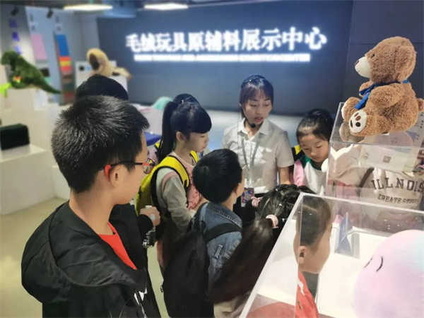 第三站為原輔料研發(fā)生產(chǎn)基地(安貝斯孵化園),孩子可以了解到毛絨玩具產(chǎn)業(yè)鏈的總體知識,并對廠房內(nèi)部進行參觀;第四站為玩具研發(fā)生產(chǎn)基地(恒安玩具工廠),可以依次參觀繡花車間、車縫車間、手縫車間、質(zhì)檢車間,了解毛絨玩具的工藝與生產(chǎn)過程;第四站是毛絨玩具五大中心,在前三站對毛絨玩具了解的基礎(chǔ)上,對毛絨玩具進行總結(jié),之后可以體驗抓娃娃機、扭蛋機、購買毛絨玩具。