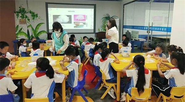 第二站為原料生產(chǎn)基地(恒通纖維),了解PP綿的來歷、功能及工序,利用嗅覺、觸覺感受毛玩填充物PP綿的形態(tài);