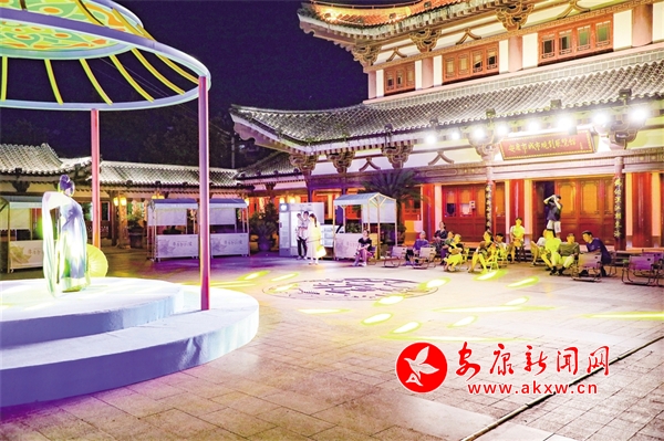 在安瀾樓南側(cè),刻有金州八景的燈籠高高懸掛,穿上漢服,提著燈籠,走向瀾上燈會,感受花燈如晝。移步廊道,徜徉安瀾夜市,感受煥然一新的公園氛圍、琳瑯滿目的文創(chuàng)精品和目不暇接的特色非遺。