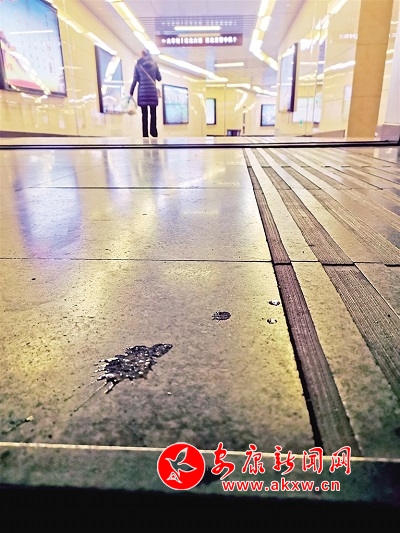 1月16日,有市民在安康城區(qū)江北大道地下通道內(nèi)隨地吐痰。