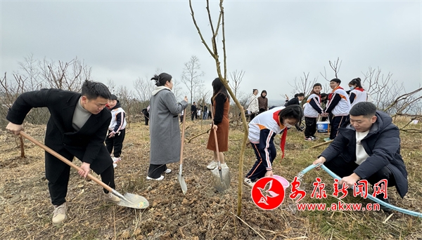 活動伊始,綠化公司的工作人員詳細地講解了植樹的要點?;顒蝇F(xiàn)場,大家分工協(xié)作,相互配合,放苗扶樹、揮鍬填土、踩土固苗、提水灌溉……充分發(fā)揚了團結(jié)協(xié)作、吃苦耐勞的優(yōu)良作風。在大家的共同努力下,一棵棵小樹屹立在春風中,成為這個春天又一道亮麗的風景。隊員們還親手懸掛小樹牌,許下自己美好心愿。?