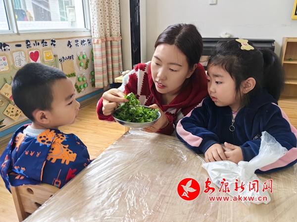 幼兒園組織家長和幼兒走進(jìn)自然,一起踏青采蒿,孩子們?cè)賹⒃牧蠋У綄W(xué)校?;顒?dòng)中,老師通過直觀形象的圖片、生動(dòng)有趣的視頻向孩子們講解清明節(jié)的來歷、風(fēng)俗習(xí)慣以及蒿子粑粑的制作方法,接著,孩子們?cè)诶蠋煹囊龑?dǎo)下,清洗蒿子,真真切切地體驗(yàn)了“做蒿子粑粑”的全過程。