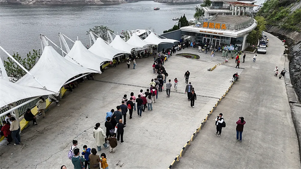 清晨7時(shí)30分,即已有游客趕到景區(qū)游客中心,8時(shí)10分,第一趟班船已然發(fā)船。上午9時(shí),瀛湖北門口的停車場,500余停車位就已停滿車輛。車輛開始向景區(qū)南大門——翠屏島方向分流。