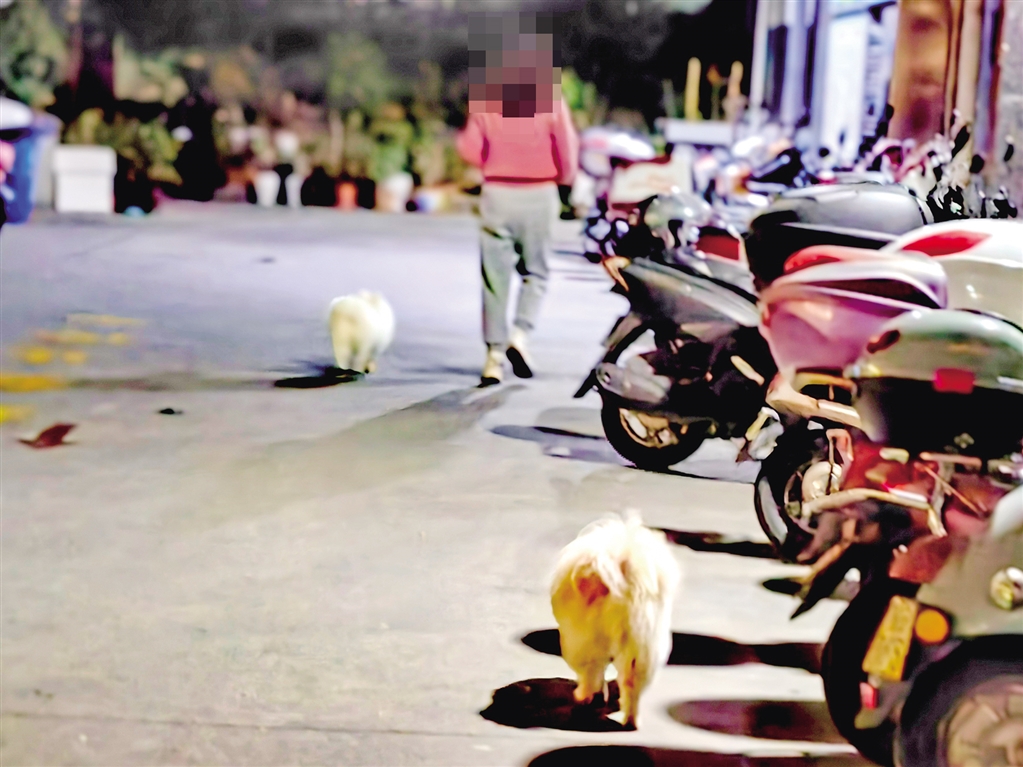 4月8日,有市民在安康中心城區(qū)巴山西路人行道不牽繩遛狗。(鄭時根 攝)