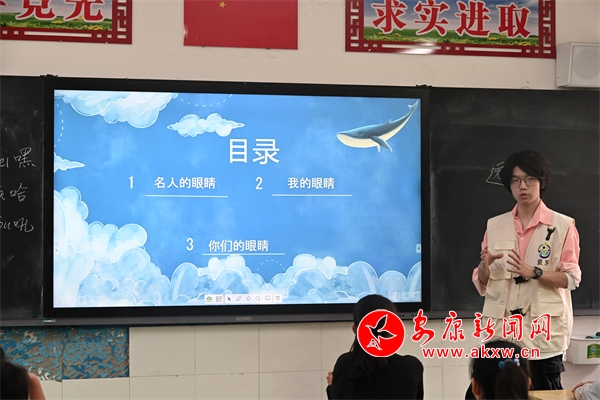 走進(jìn)孩子們精心打掃過的教室,我們被純真的笑容感染,他們坐得筆直而端正,認(rèn)真聆聽著我們的介紹。隨后,在老師的帶領(lǐng)下,孩子們圍坐一圈,與志愿者們共同開展精心策劃的小游戲。游戲期間歡聲笑語不斷,孩子們沉浸其中,臉上洋溢著喜悅。孩子們淳樸無邪的笑容,讓團(tuán)隊感受到了愛心傳遞的力量。
