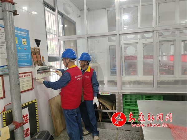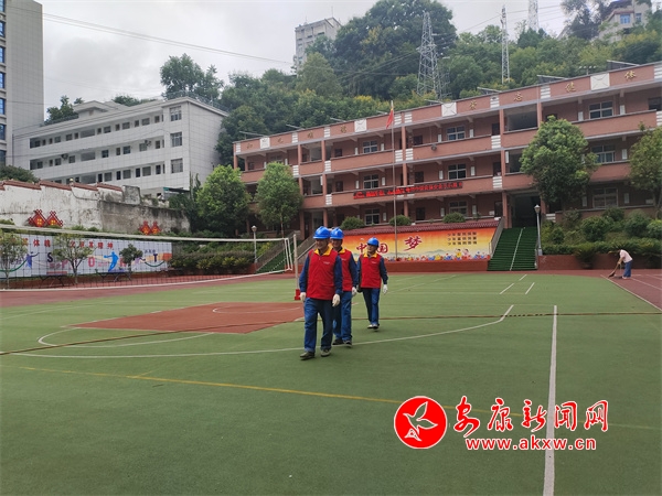 在白河縣冷水鎮(zhèn)中心小學,工作人員仔細檢查校園用電設(shè)備情況,由于暑假期間學校用電設(shè)施大多處于閑置負荷狀態(tài),加上高溫、暴雨等天氣影響,存在諸多安全用電隱患。工作人員重點對教室、辦公室、食堂等場所的供電設(shè)備進行“把脈問診”,并對這些區(qū)域的開關(guān)插座進行試用,確保用電無憂。