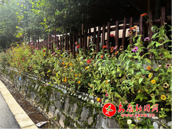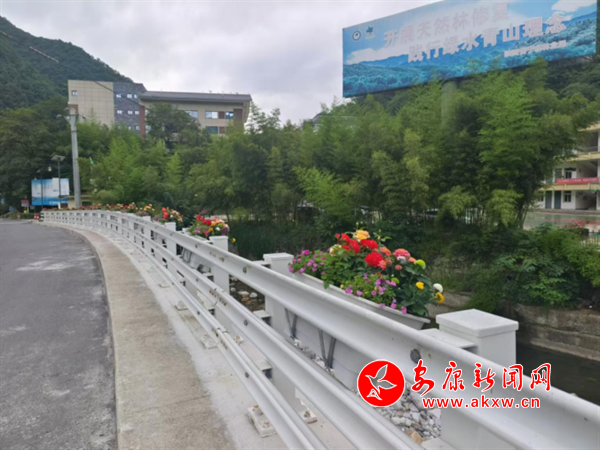 在廣貨街集鎮(zhèn),橋梁欄桿及院墻上定制的75個(gè)花盆已經(jīng)安裝到位,900個(gè)擺放花盆也陸續(xù)開始移栽布景,紫薇、繡球、月季、串串紅等鮮花競相開放,十分美麗。為確?;ǘ涑苫盥剩才艑H诉M(jìn)行日常管護(hù),按需澆水。走到其他村(社),依然可以看見身穿紅馬甲的志愿者們?cè)谇宄愤呺s草,打掃衛(wèi)生,在重點(diǎn)段落栽種適宜花朵,整個(gè)鎮(zhèn)域內(nèi),花朵競相開放、香氣四溢。
