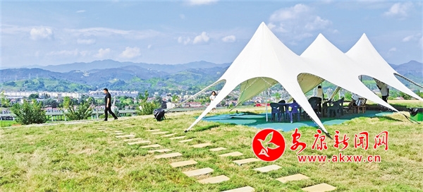 當我賞罷一馬平川的恒口貢米基地,邁步田園后面的緩坡,走過以“稻夢時光”統(tǒng)一冠名的彩虹路、孝義文化長廊、研學基地、民宿群落,來到土坡頂臺上的這塊綠地,目光所及,仍屬“稻夢”系列:碧綠的草坪、雪白的帳篷、深紅的房子、鮮艷的花卉,組成了視野開闊、環(huán)境幽靜的“稻夢時光露營基地”。