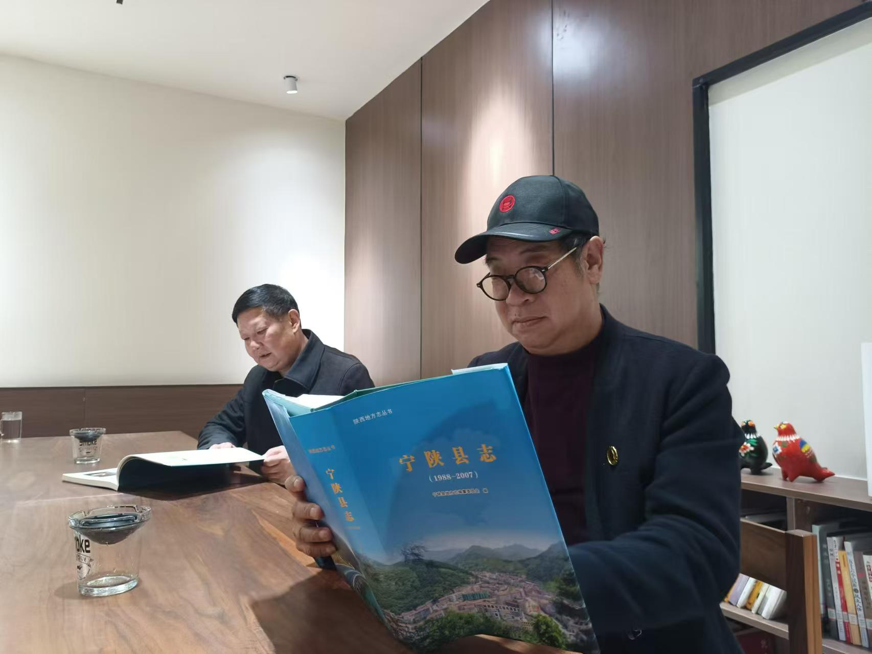 陜西省作家協(xié)會(huì)主席團(tuán)顧問(wèn)、著名作家和谷走向西墻邊的沙發(fā),剛一落座,就順手抽出了《寧陜民歌集》《寧陜廳志》等書(shū),興致勃勃地翻閱著。我見(jiàn)他放在茶上的書(shū)中有本《中國(guó)子午道》,就從門(mén)外請(qǐng)入該書(shū)作者、安康著名攝影家王曉群。二人從子午道談到秦直道,說(shuō)文史,話(huà)旅游,興致盎然地建議寧陜縣:聯(lián)手中省市有關(guān)方面,以翻越秦嶺的古道為主線(xiàn),開(kāi)發(fā)文旅融合干線(xiàn),讓更多的人走進(jìn)秦嶺、了解秦嶺,也讓秦嶺這座文化富礦、生態(tài)富礦發(fā)揮更好的作用!