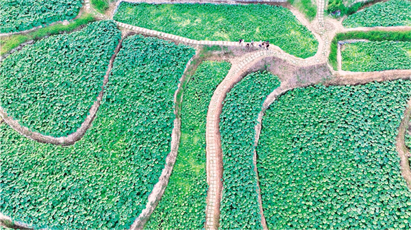 蒿坪鎮(zhèn)改革村“荷”你“藕”遇農(nóng)文旅園區(qū)夏日荷葉,一片宜人景色。陳梅 攝