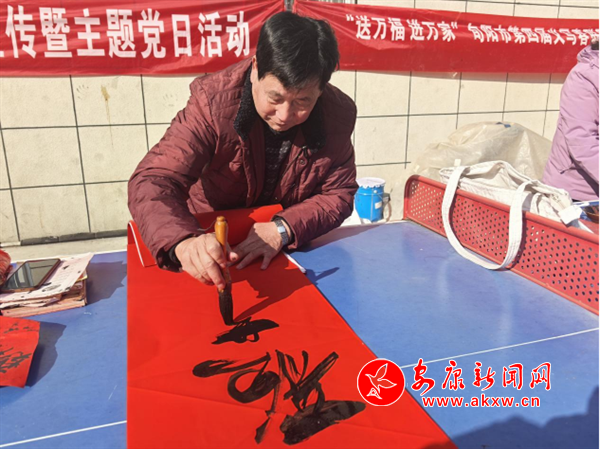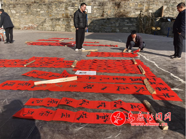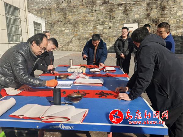 1月20日,旬陽(yáng)市司法局、旬陽(yáng)市文聯(lián)、旬陽(yáng)市書法協(xié)會(huì)、旬陽(yáng)市楹聯(lián)學(xué)會(huì)組織書法家,走進(jìn)銅錢關(guān)鎮(zhèn),為廣大群眾義寫蛇年喜慶春聯(lián),獻(xiàn)上新春祝福?;顒?dòng)現(xiàn)場(chǎng),書案一字排開,書法家們揮毫潑墨,以“?!弊钟麻_筆,行、隸、楷等多種筆體各顯神韻。此次活動(dòng)義寫春聯(lián)及福字500余幅,為現(xiàn)場(chǎng)群眾送去一份別有新意的新春禮物和美好祝愿。(通訊員 石佩)?