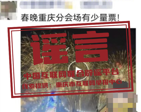 真相:近日,某網(wǎng)民在社交平臺發(fā)布信息稱“春晚重慶分會場有少量門票”,引發(fā)關(guān)注。經(jīng)核實,網(wǎng)傳信息系謠言。1月24日,春晚重慶分會場工作專班辦公室(中共重慶市委宣傳部)、重慶市公安局聯(lián)合發(fā)布《重慶市2025年除夕重要活動及臨時管控安排通告》,2025年春晚重慶分會場節(jié)目實行無觀眾全封閉制作,不設(shè)觀演區(qū)、不帶觀眾,不售票、無贈票,未安排焰火表演。同時,公安機關(guān)將于1月28日17時起,適時對南岸區(qū)、渝中區(qū)、江北區(qū)部分區(qū)域及道路實施臨時管控。目前,造謠網(wǎng)民已接受警方處罰。(來源:“重慶辟謠”微信公眾號)