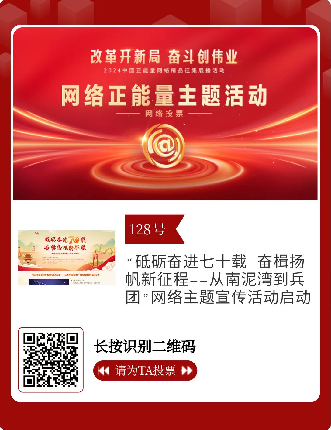 128.“砥礪奮進(jìn)七十載 奮楫揚(yáng)帆新征程——從南泥灣到兵團(tuán)”網(wǎng)絡(luò)主題宣傳活動(dòng)啟動(dòng)