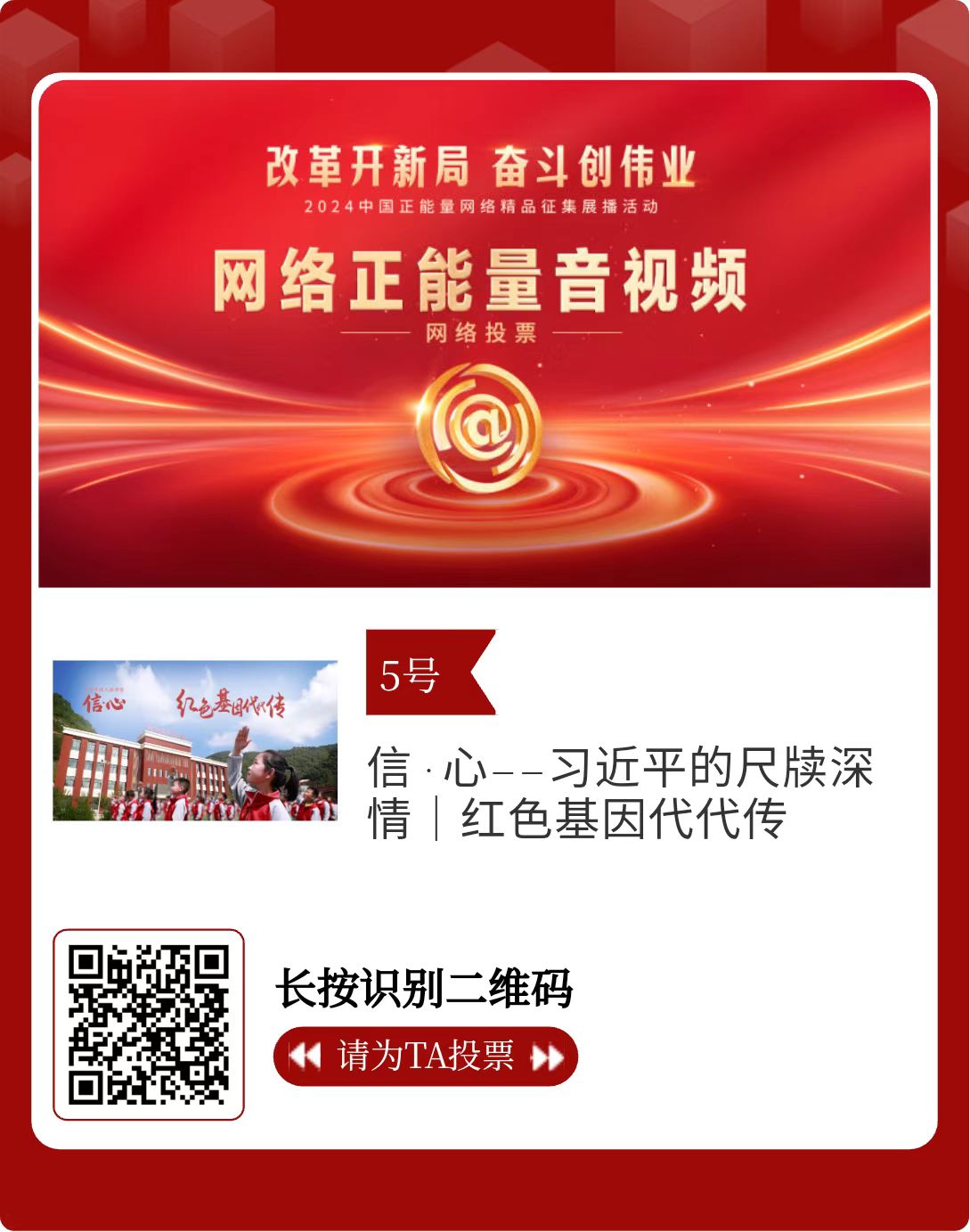 改革開新局,奮斗創(chuàng)偉業(yè)。由中央網(wǎng)信辦主辦的2024中國(guó)正能量網(wǎng)絡(luò)精品征集展播活動(dòng)今天啟動(dòng)網(wǎng)絡(luò)展播投票。