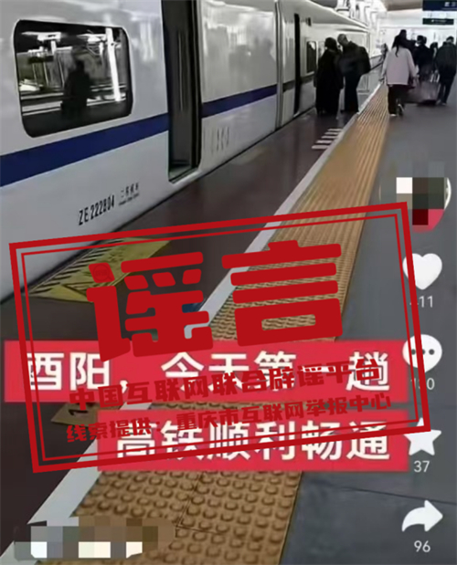 真相:近日,某網(wǎng)民在互聯(lián)網(wǎng)平臺(tái)發(fā)布信息稱“酉陽,今天第一趟高鐵順利暢通”,引發(fā)關(guān)注。經(jīng)核實(shí),網(wǎng)傳信息系謠言,酉陽縣暫未建成高鐵站。根據(jù)建設(shè)計(jì)劃,黔吉高鐵重慶段將于年內(nèi)開工建設(shè),線路貫穿黔江區(qū)、酉陽縣、秀山縣三地,線路全長(zhǎng)約224.2km,全線設(shè)置車站3座,整個(gè)建設(shè)工期大概5年左右,預(yù)計(jì)在2030年之前全面建成通車。目前,警方已對(duì)造謠者展開調(diào)查。(來源:“重慶辟謠”微信公眾號(hào))