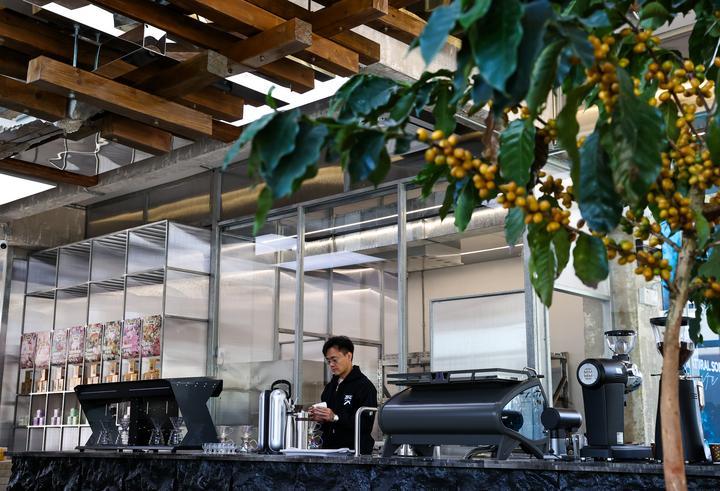 2025年12月10日,旅居云南的韓君瑋在位于昆明的南來(lái)盛咖啡店內(nèi)制作咖啡。韓君瑋自清華大學(xué)畢業(yè)后,已在咖啡行業(yè)耕耘十余年。2024年,他受聘成為云南一家老字號(hào)咖啡品牌的品牌總顧問(wèn),從此投身到云南咖啡的產(chǎn)品研發(fā)和品牌推廣工作中。一年多來(lái),他每月都會(huì)來(lái)到昆明,短則幾天,長(zhǎng)則數(shù)周,開啟了一種“半旅居、半工作”的生活模式?!霸颇巷L(fēng)景優(yōu)美、氣候宜人,我很享受這樣的狀態(tài)。”韓君瑋說(shuō)。