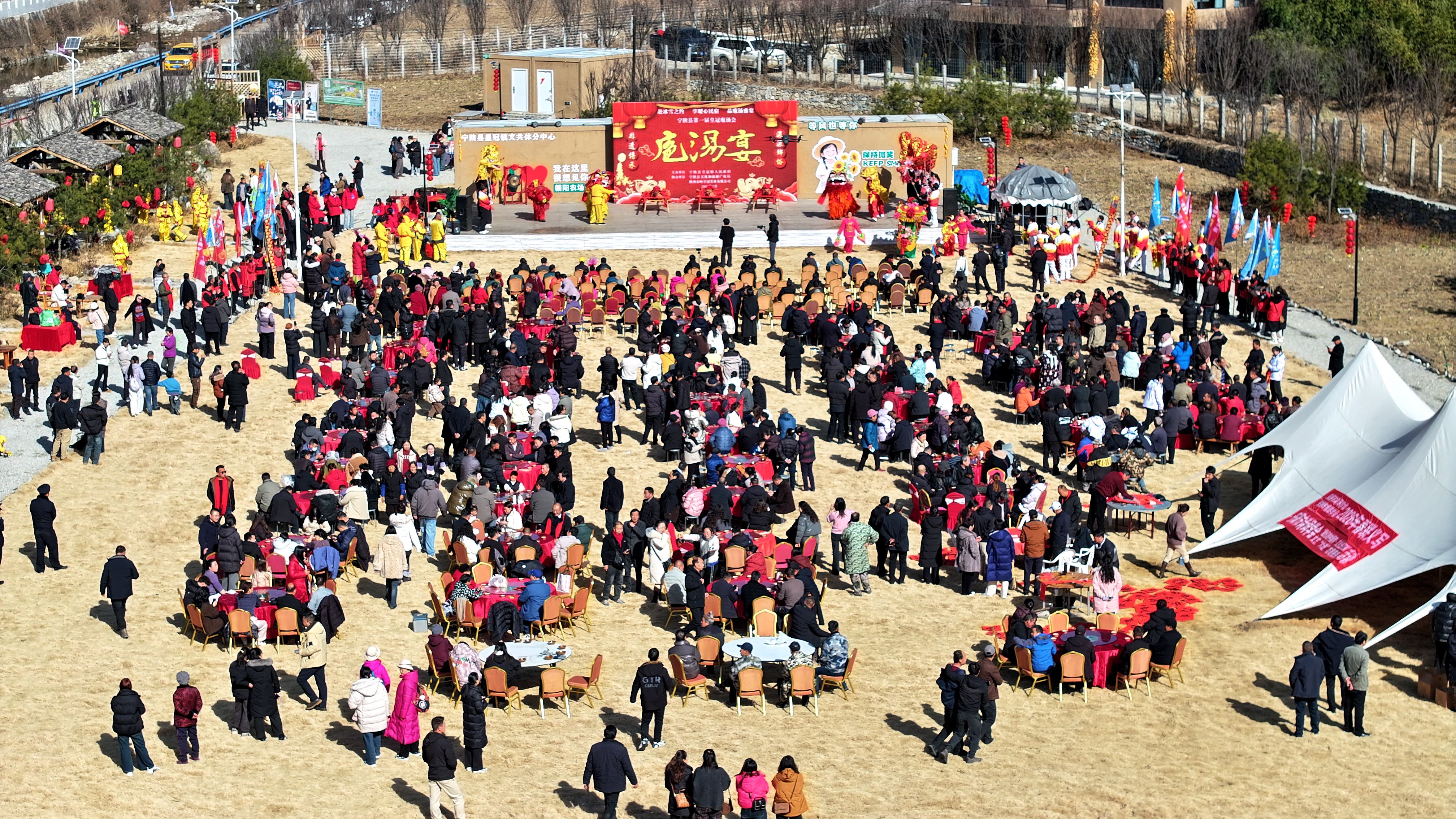 文化賦能是寧陜冬春旅游的核心亮點。1月16日,皇冠鎮(zhèn)朝陽農(nóng)場里首屆皇冠庖湯會熱鬧開席,《二嫂夸皇冠》的表演點燃現(xiàn)場氛圍,舞獅、彩船等傳統(tǒng)民俗輪番上演,莊重的祭天儀式傳遞著農(nóng)耕文明的厚重。活動現(xiàn)場墨香陣陣,鄉(xiāng)土菜肴香氣四溢?!坝玫亩际乾F(xiàn)殺黑豬,味道特別地道?!蓖獾赜慰徒抠澆唤^口,西安游客葉格芳也直言:“專程前來,不虛此行?!贝舜吴覝珪参慰?300余人,實現(xiàn)旅游消費30萬元。
