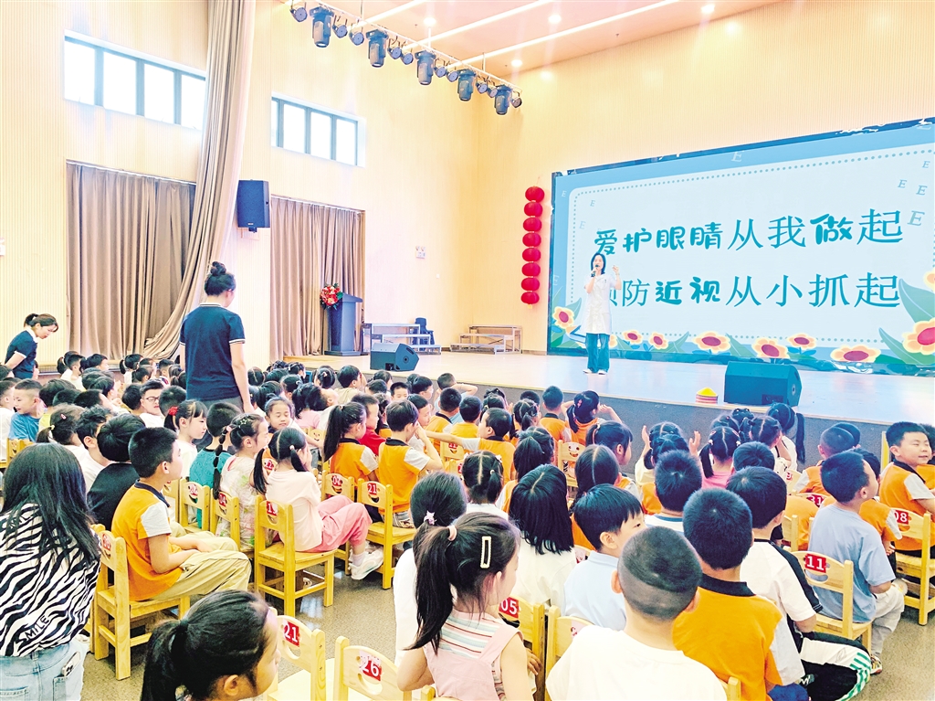 今年6月6日是全國(guó)第30個(gè)“愛眼日”。在愛眼日來臨之際,6月5日下午,市婦幼保健院兒童保健科醫(yī)生陳興芳走進(jìn)安康市高新區(qū)第六幼兒園,為大班幼兒及老師帶來近視防控知識(shí)講座。陳興芳以眼睛的謎語開場(chǎng),用通俗易懂的語言向孩子們介紹了眼睛的結(jié)構(gòu)和功能,并通過生動(dòng)的科普向小朋友們介紹了如何正確用眼、保護(hù)視力以及手衛(wèi)生的方法。通過此次活動(dòng),不僅讓孩子們了解了眼睛的重要性,更提高了孩子們愛護(hù)眼睛的意識(shí)。(鄒春艷 攝)