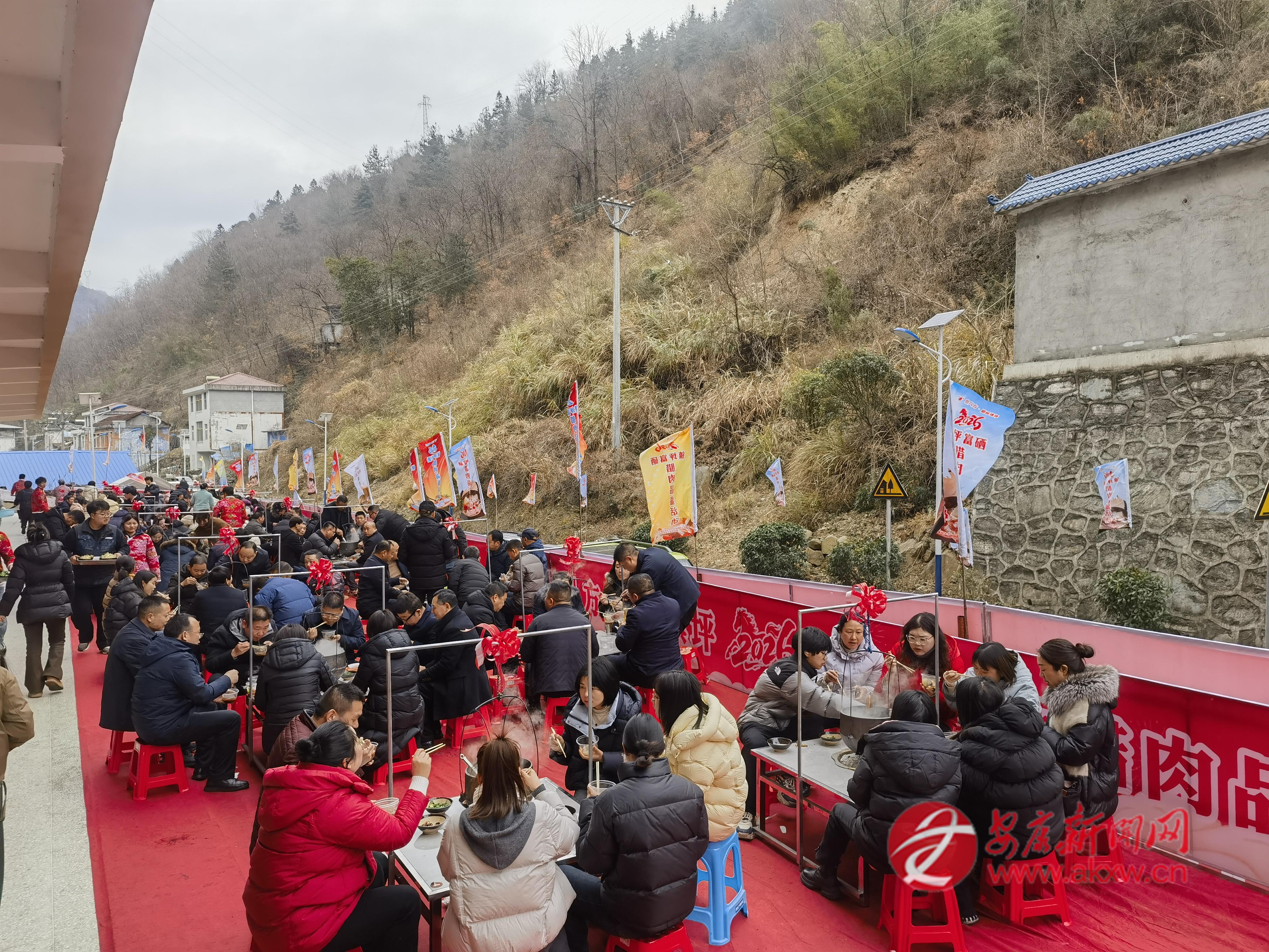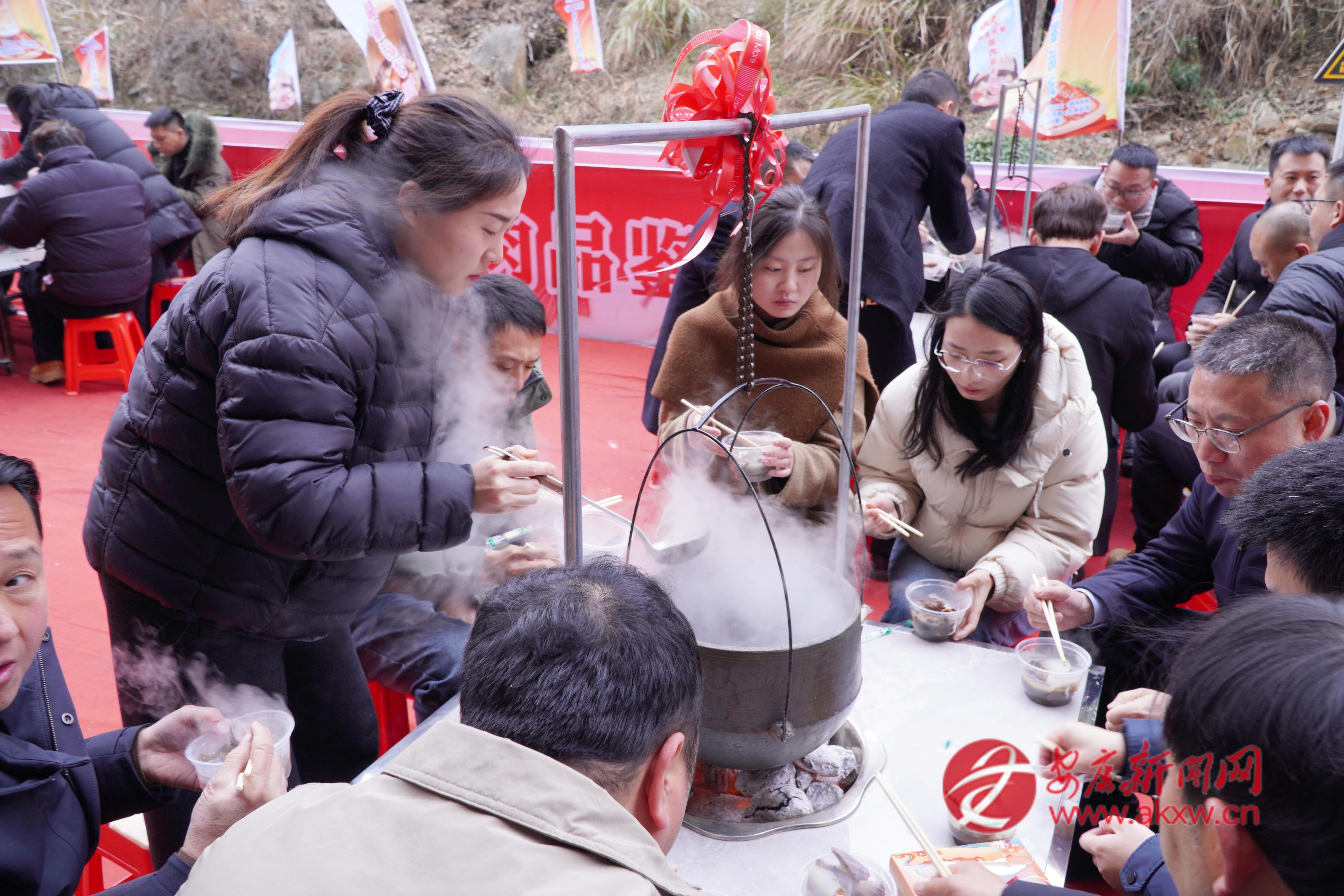 活動(dòng)現(xiàn)場(chǎng),一口巨型大鐵鍋格外引人注目,它可以燉500斤肉,可供1000人同時(shí)品嘗鎮(zhèn)坪富硒臘肉。同時(shí),20個(gè)吊鍋中,臘肉與香菇、竹筍、干洋芋果果一同燉煮,香氣四溢,讓人垂涎欲滴。賓客們圍坐一起有說(shuō)有笑,品嘗著可口地道的鎮(zhèn)坪臘肉,不僅是一場(chǎng)臘肉美食的集會(huì),更是一種非遺技藝的傳承?!霸缇吐犝f(shuō)陜南鎮(zhèn)坪的富硒臘肉有名,這次專程趕來(lái),就為這一口地道的臘味,品嘗后覺得這臘肉的味道太美了!”在活動(dòng)現(xiàn)場(chǎng),一位來(lái)自西安的游客李先生在品嘗鎮(zhèn)坪臘肉后高興地說(shuō)道。