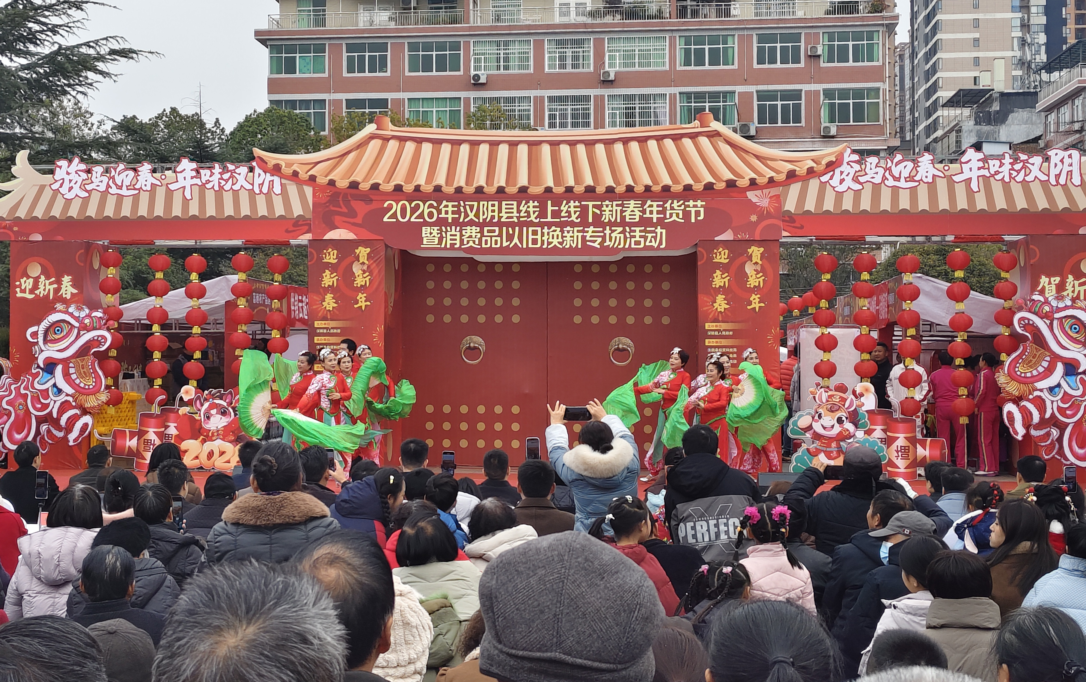 1月30日,漢陰縣舉行2026年線上線下新春年貨節(jié)暨消費(fèi)品以舊換新專場(chǎng)活動(dòng),吸引了70余家參展商參加?;顒?dòng)現(xiàn)場(chǎng),游客們欣賞文藝演出、品嘗美食、采購年貨,讓冬日里的縣城變成了歡樂的海洋。