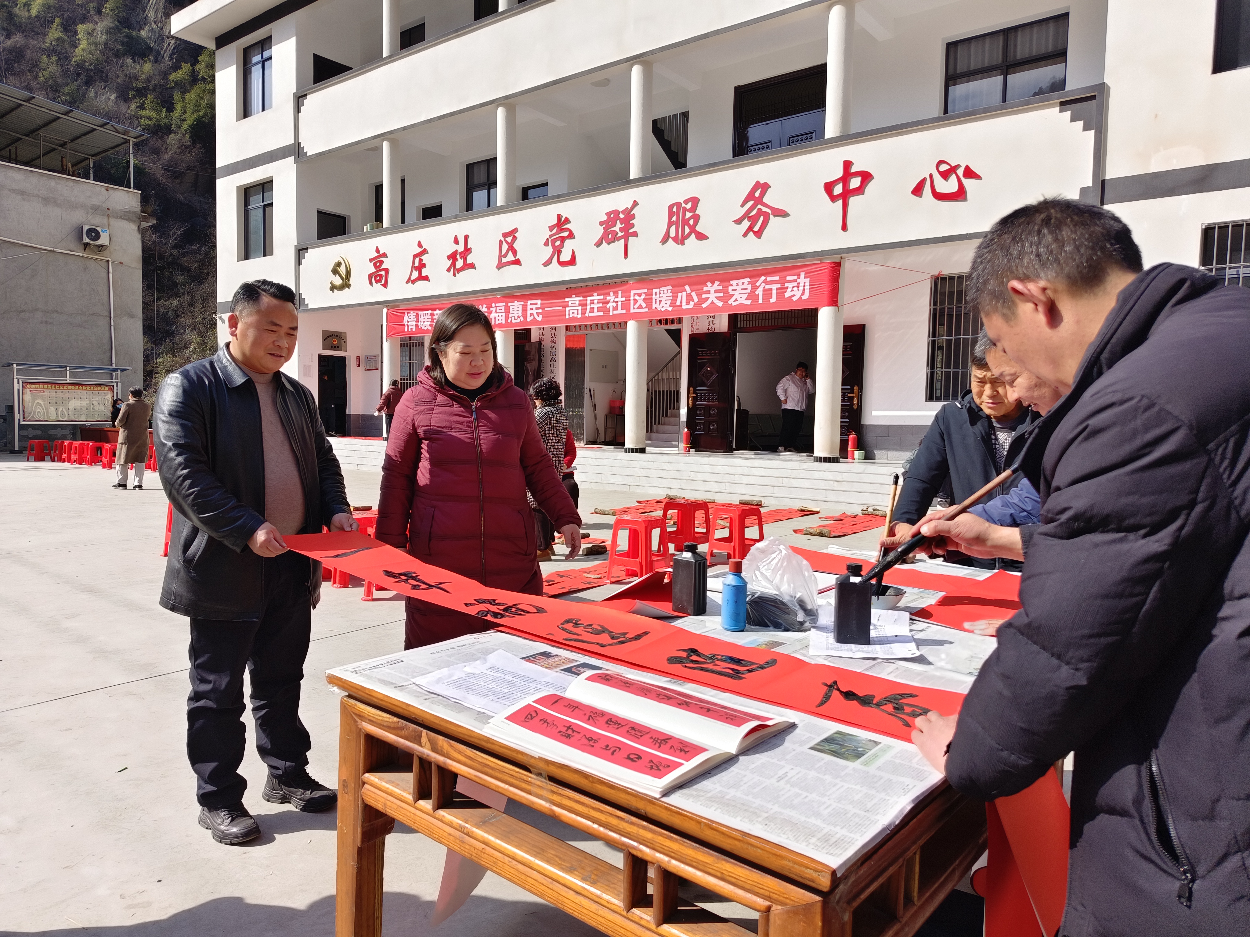 2月5日,白河縣構(gòu)朳鎮(zhèn)高莊社區(qū)聯(lián)合包建單位安康市中醫(yī)醫(yī)院和白河縣文聯(lián)開展“情暖新春·送?;菝瘛被顒?,現(xiàn)場為群眾義診送健康、義寫春聯(lián)送祝福。 黃楠芳 黃秀琴 攝