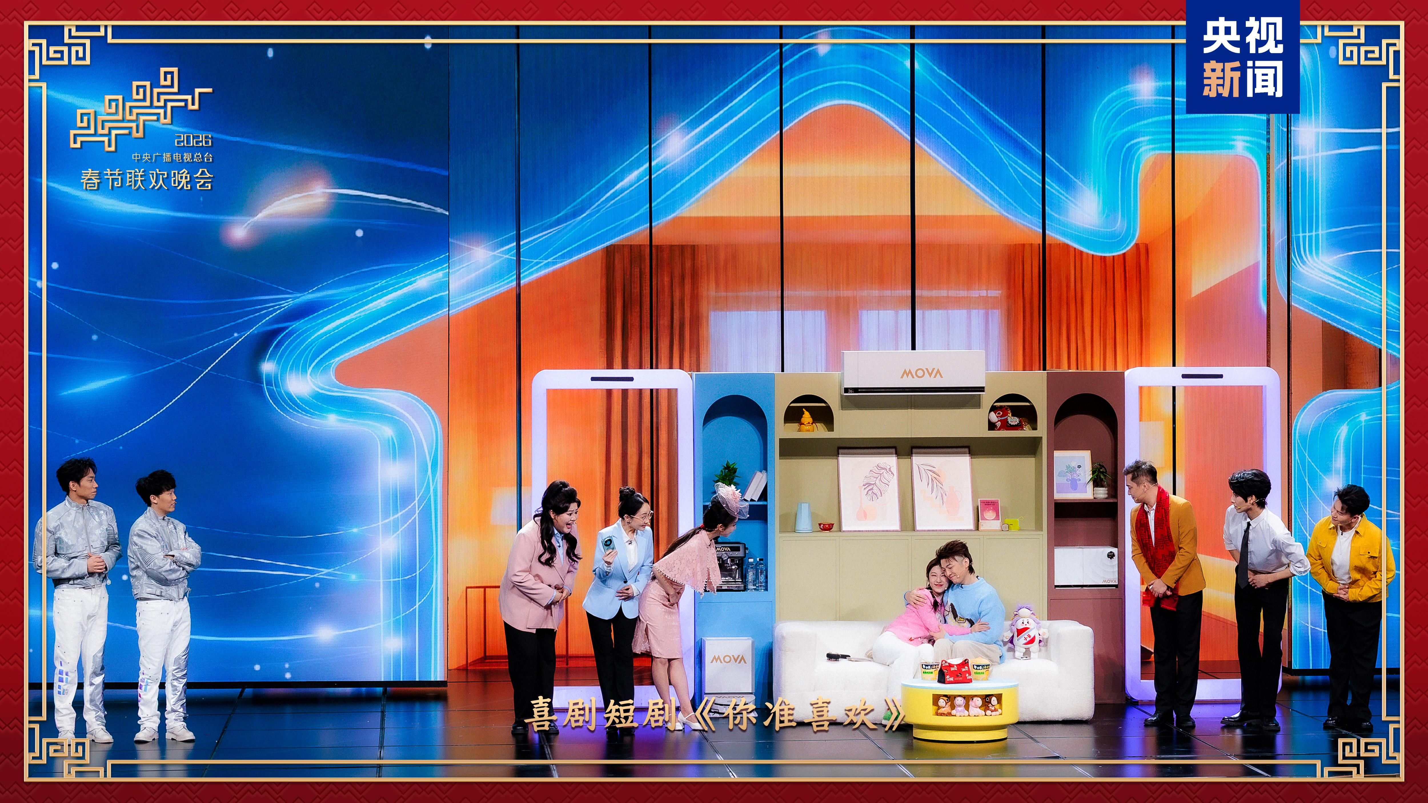 蔡明與王天放帶來(lái)小品《奶奶的最愛》,聚焦機(jī)器人融入家庭生活場(chǎng)景,笑聲與誤會(huì)交織中藏著祖孫間最真摯的愛與惦念。喜劇短劇《你準(zhǔn)喜歡》用輕松詼諧的方式演繹數(shù)字時(shí)代“越刷越上頭”的狀態(tài),引發(fā)對(duì)社交媒體產(chǎn)品“有意思”和“有意義”的思考。
