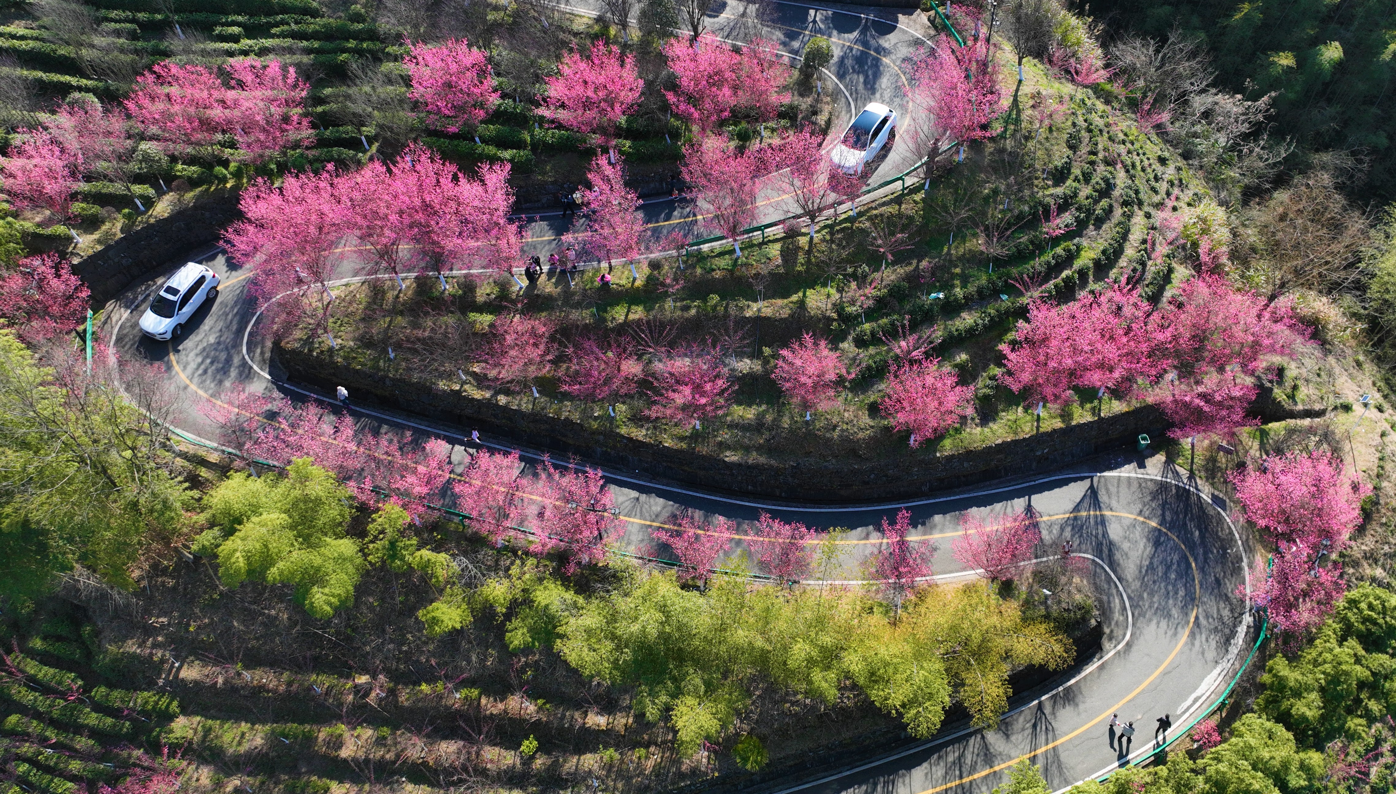 春節(jié)期間,平利縣長(zhǎng)安鎮(zhèn)洪福茶山的梅花競(jìng)相盛開,吸引眾多市民游客前來賞梅游玩。