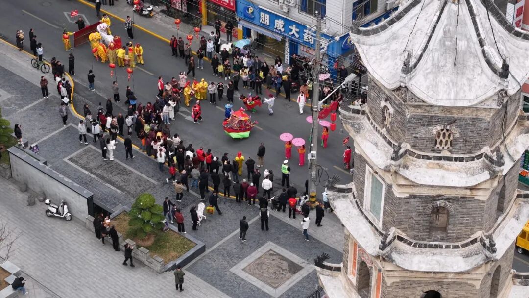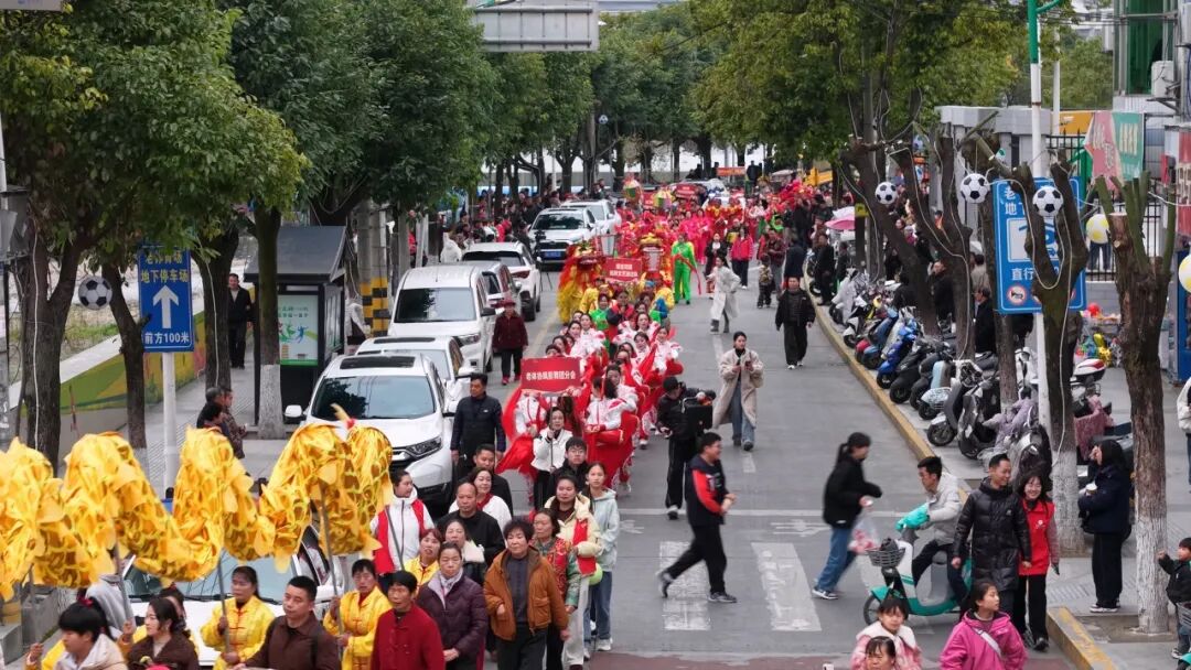 觀眾熊苗苗:很遠就被鑼鼓喧天的場景給吸引了,看到有很多隊伍在演出,有年紀大的叔叔阿姨,也有很小的弟弟妹妹。這個場景真的非常熱鬧,讓人看著很開心,年味十足。