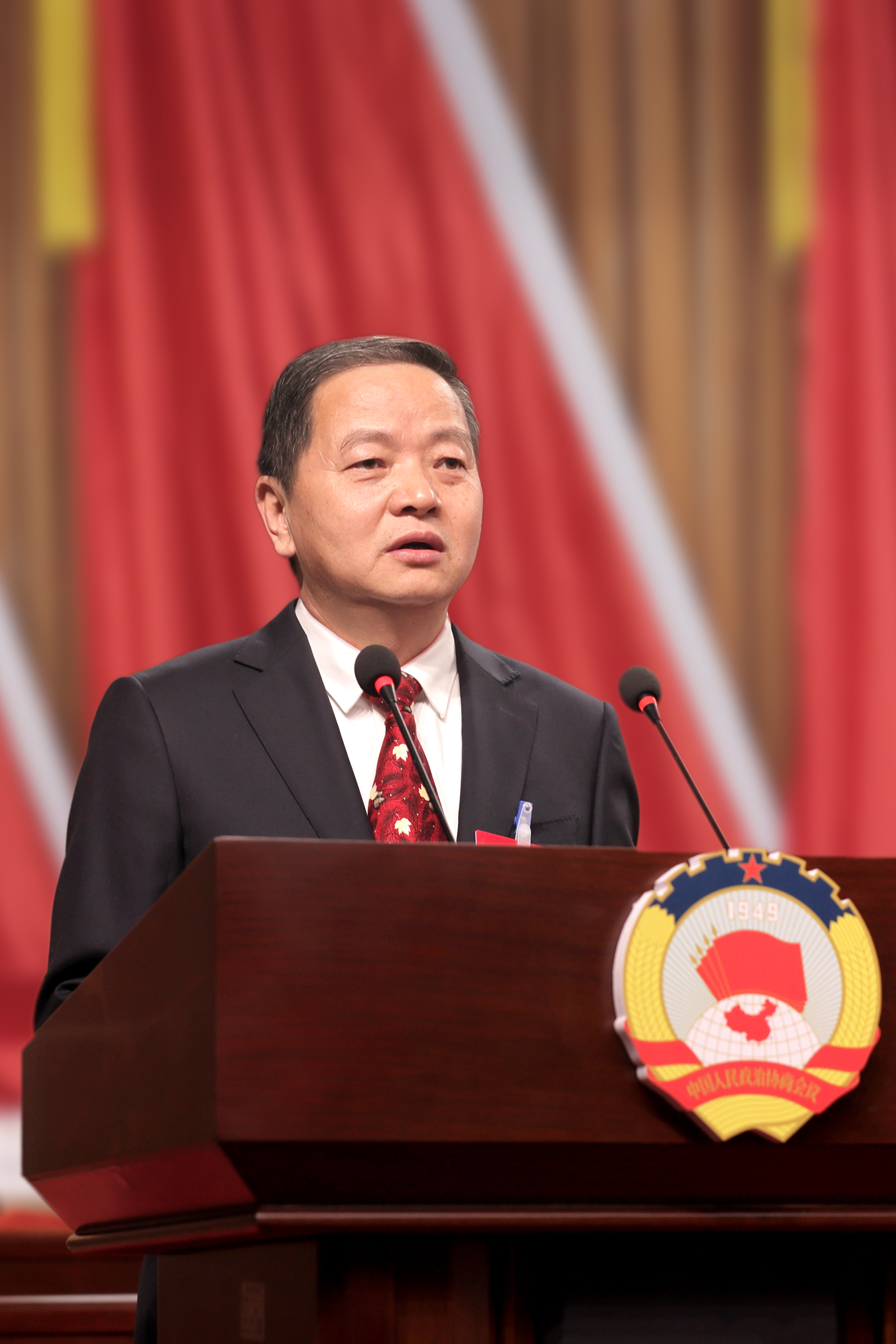 市政協(xié)主席周建功代表政協(xié)安康市第五屆委員會常務(wù)委員會作工作報告。記者 潘潤生 攝