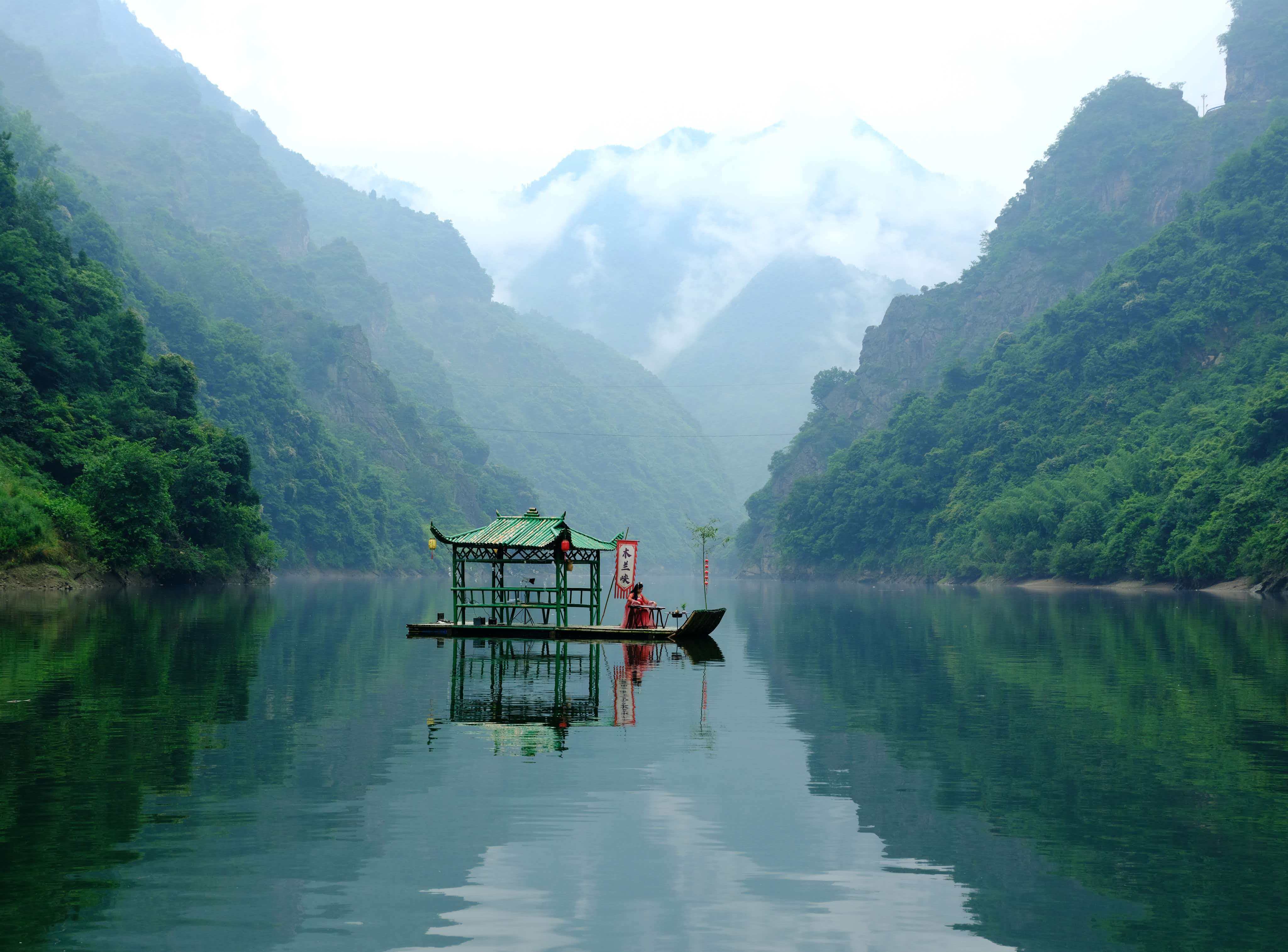 2012年夏天,我陪客人走進(jìn)毛壩鎮(zhèn)。朋友做向?qū)?,這才第一次見(jiàn)識(shí)了木蘭峽,紫陽(yáng)的深山里,原來(lái)藏著這般景致。峽水幽幽,綠得深沉,不起一絲波瀾。小船行在水上,像是劃破了一匹綠綢子;又像是根本沒(méi)動(dòng),只靜靜地浮著,浮在一整個(gè)下午的光陰里。兩岸奇峰默然對(duì)峙,滿坡蓊蓊郁郁,盡是些叫不出名字的樹木。偶爾有野山羊從崖邊下來(lái),到峽邊低頭喝水,見(jiàn)了人也不是很怕。峽的盡頭,一段古纖道斜斜地臥在峽邊,石頭上還留著當(dāng)年的鑿痕。不遠(yuǎn)處立著一塊清代道光年間的石碑,上面的字跡雖已模糊,卻仿佛還在那里,低聲訴說(shuō)著從前的熱鬧。