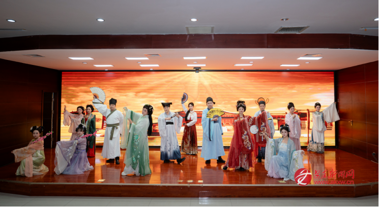 花枝映雅韻,羅衣展風(fēng)姿?;顒?dòng)現(xiàn)場(chǎng),女員工們褪去職業(yè)裝,換上襦裙、曲裾等各式漢服,簪花綰發(fā)、輕搖團(tuán)扇,一顰一笑間皆是溫婉雅致。伴隨著悠揚(yáng)的古樂,一場(chǎng)精心編排的漢服秀驚艷開場(chǎng),女職工代表緩步登臺(tái),或頷首低眉、或淺笑嫣然,在詩(shī)詞誦讀的映襯下,將中華傳統(tǒng)服飾的典雅之美演繹得淋漓盡致?!敖韼讲蛔岉毭?,須眉亦懷雅意”,更令人驚喜的是,四位男士代表身著儒巾青衫現(xiàn)身助陣,平日里雷厲風(fēng)行的他們,化身謙謙君子,步履從容間盡顯儒雅風(fēng)范,現(xiàn)場(chǎng)掌聲與歡笑聲此起彼伏。