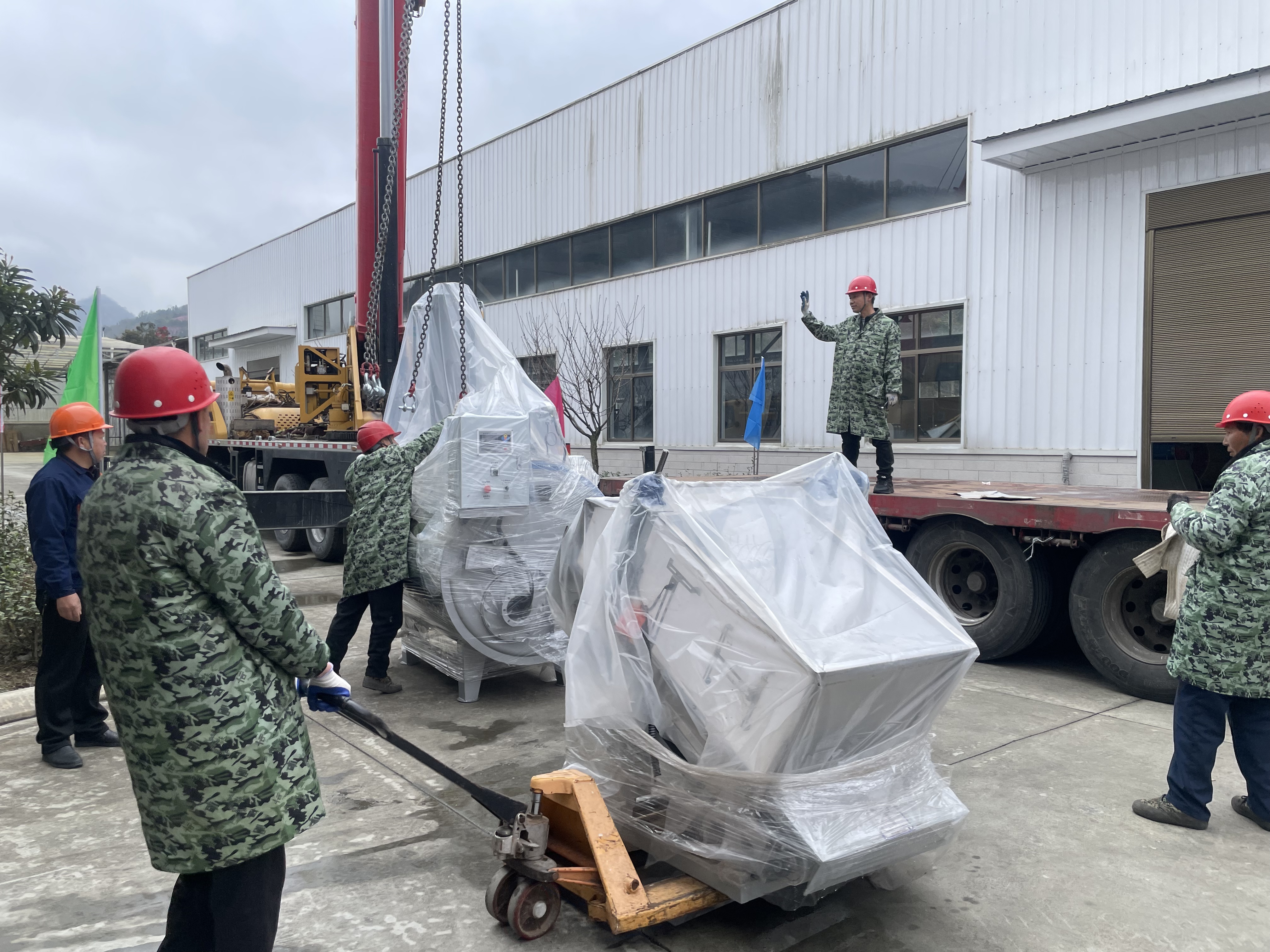 走進(jìn)平利硒地抹茶茶業(yè)有限公司廠(chǎng)區(qū),一派繁忙景象映入眼簾:滿(mǎn)載設(shè)備的大型貨車(chē)緩緩駛?cè)?,吊?chē)揮臂起吊,工人們協(xié)同搬運(yùn),一件件精密設(shè)備被精準(zhǔn)定位。從入場(chǎng)指引到吊裝作業(yè),再到設(shè)備擺放,各環(huán)節(jié)環(huán)環(huán)相扣、井然有序。