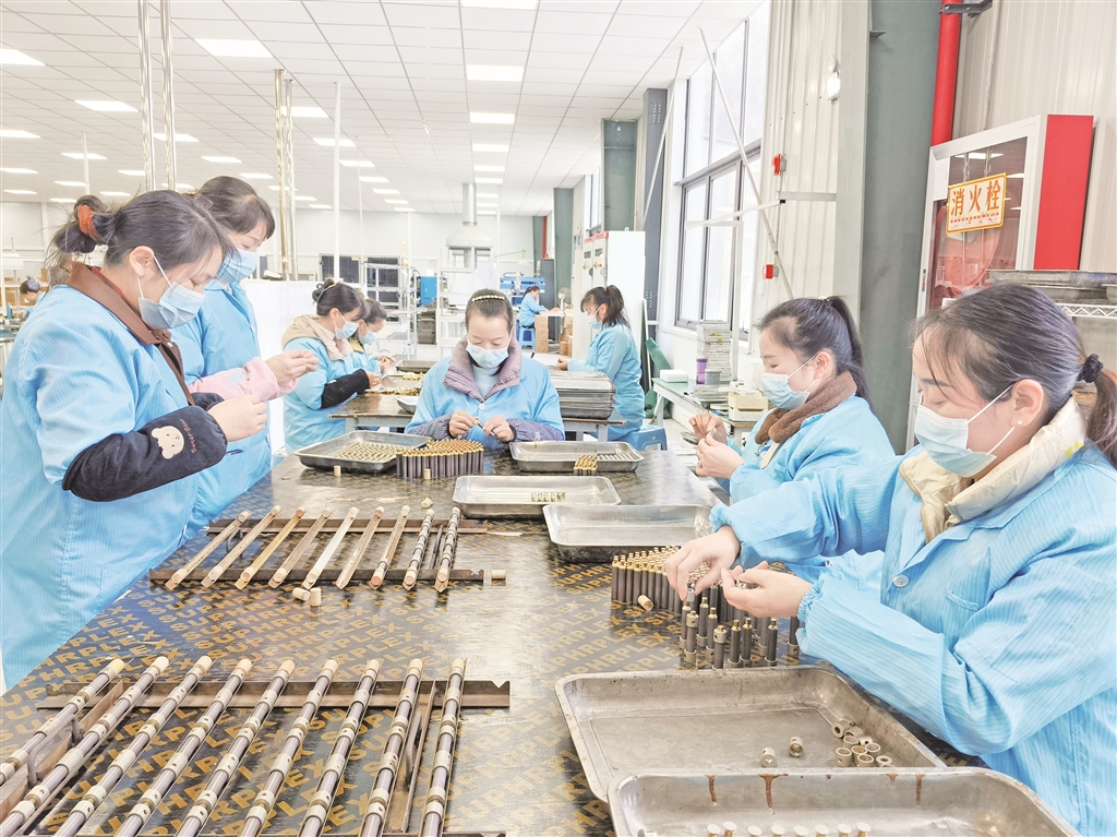 在陜西歐西克電子有限公司生產車間,各條生產線滿負荷運轉,高壓陶瓷電容器、GPS天線片等產品有序生產。從電子器件成型、燒制、焊接,到絲網印銀、質量抽檢,每一道流程都嚴謹規(guī)范、精益求精,以高標準保障產品質量?!皬凸彤a后,企業(yè)將趕制訂單作為核心任務,全力保障訂單交付?!必撠熑烁呔S軍信心滿滿地表示,“2026年企業(yè)將聚焦生產設備更新與產能提升,加大科技創(chuàng)新和設備投入,爭取實現(xiàn)年產值9000萬元的目標,帶動更多群眾在家門口就業(yè)增收?!?/p>
