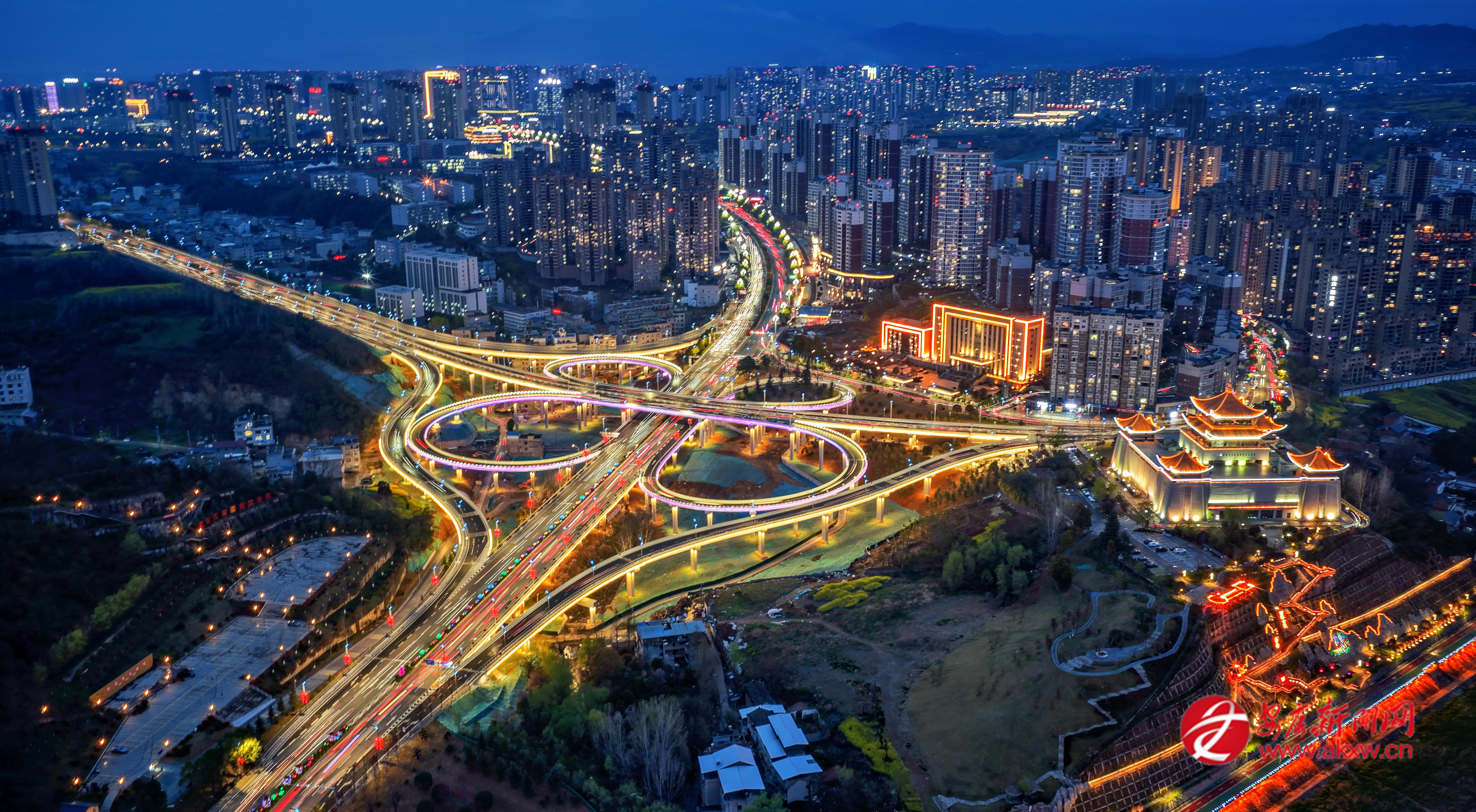 3月15日,七里溝立交如金色紐帶裝點在漢江之畔,與萬家燈火交相輝映,展現(xiàn)出陜南小城春夜里特有的璀璨與活力。皮勇維 攝