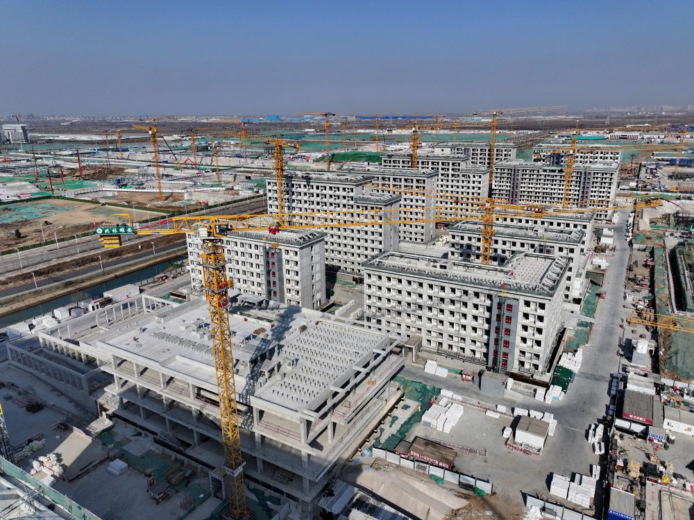 2021年是雄安新區(qū)大規(guī)模開發(fā)建設(shè)向縱深發(fā)展的關(guān)鍵一年。容東片區(qū)是雄安新區(qū)開發(fā)建設(shè)的先行區(qū)域,擔(dān)負(fù)著承接北京非首都功能疏解和安置回遷群眾的重要任務(wù)。這是2021年4月8日拍攝的雄安新區(qū)容東片區(qū)安置房項(xiàng)目建設(shè)現(xiàn)場(chǎng)(無人機(jī)照片)。2021年10月,容東第一批安置房開始交付。