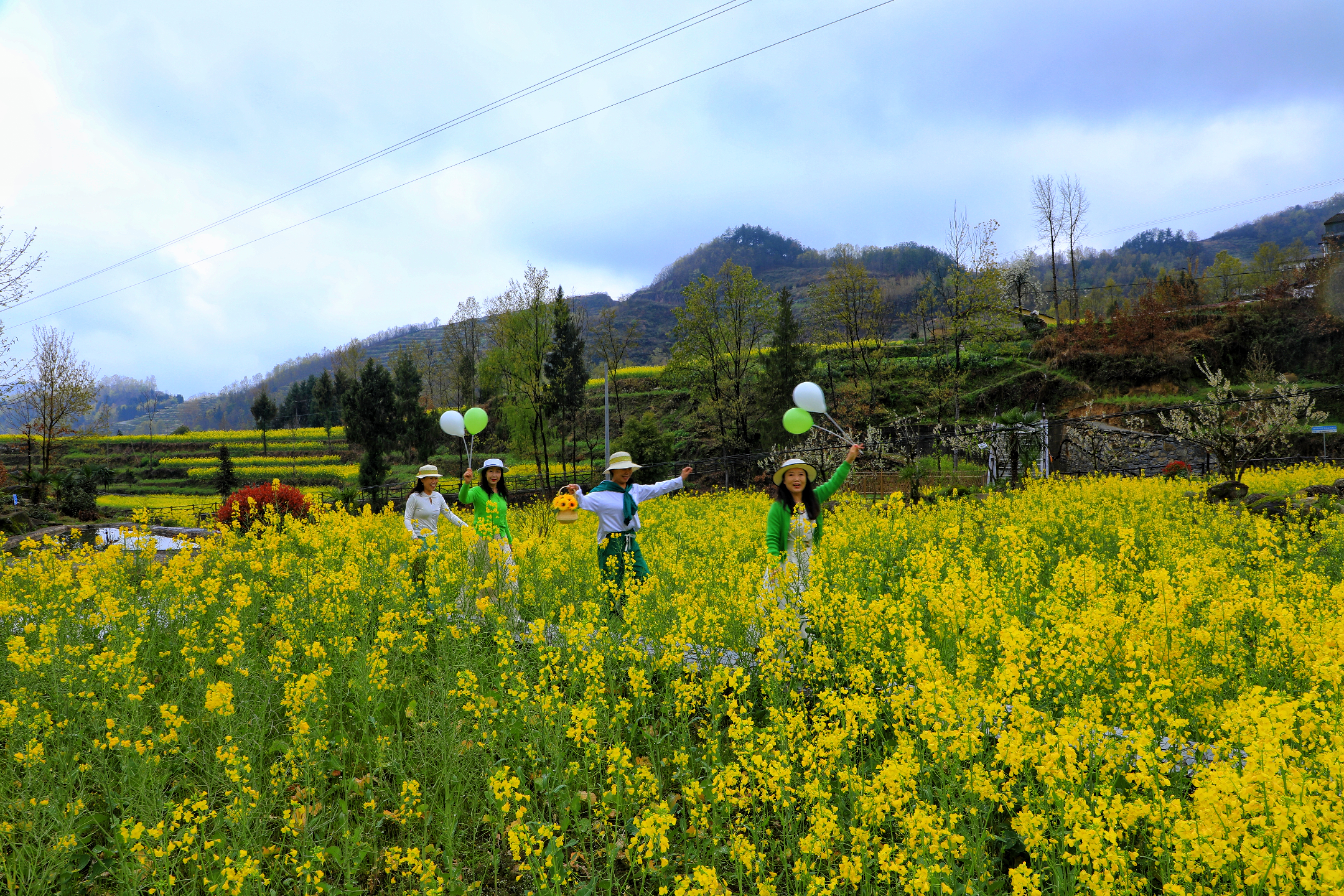 游客在油菜花海游玩打卡