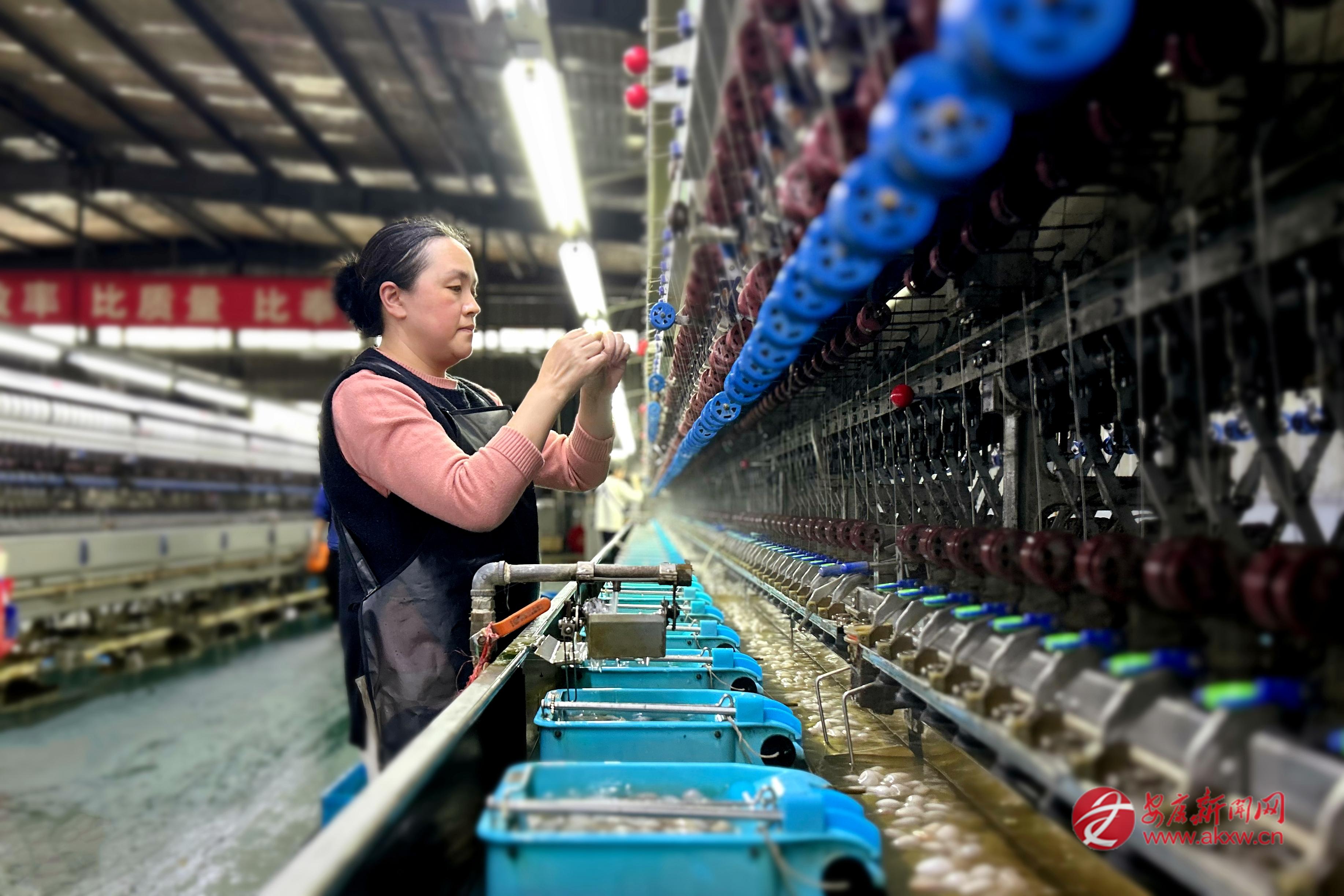 “今年國內(nèi)高端家紡市場需求旺盛,訂單一直很充足?!逼髽I(yè)負(fù)責(zé)人孫浩勇介紹,依托本地優(yōu)質(zhì)蠶繭,企業(yè)滿負(fù)荷生產(chǎn)。同時,通過“企業(yè)+合作社+農(nóng)戶”利益聯(lián)結(jié)機(jī)制,天成絲業(yè)與數(shù)千戶蠶農(nóng)簽訂保底收購協(xié)議,提供全流程服務(wù),實現(xiàn)企業(yè)增效、蠶農(nóng)增收。