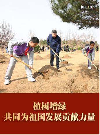 3月30日上午,習(xí)近平總書記在參加首都義務(wù)植樹(shù)活動(dòng)時(shí)強(qiáng)調(diào),良好生態(tài)人人共享,也需要合力共建。要組織動(dòng)員全社會(huì)廣泛參與植樹(shù)造林,為山川大地增添錦繡,讓中國(guó)式現(xiàn)代化的底色更加亮麗。