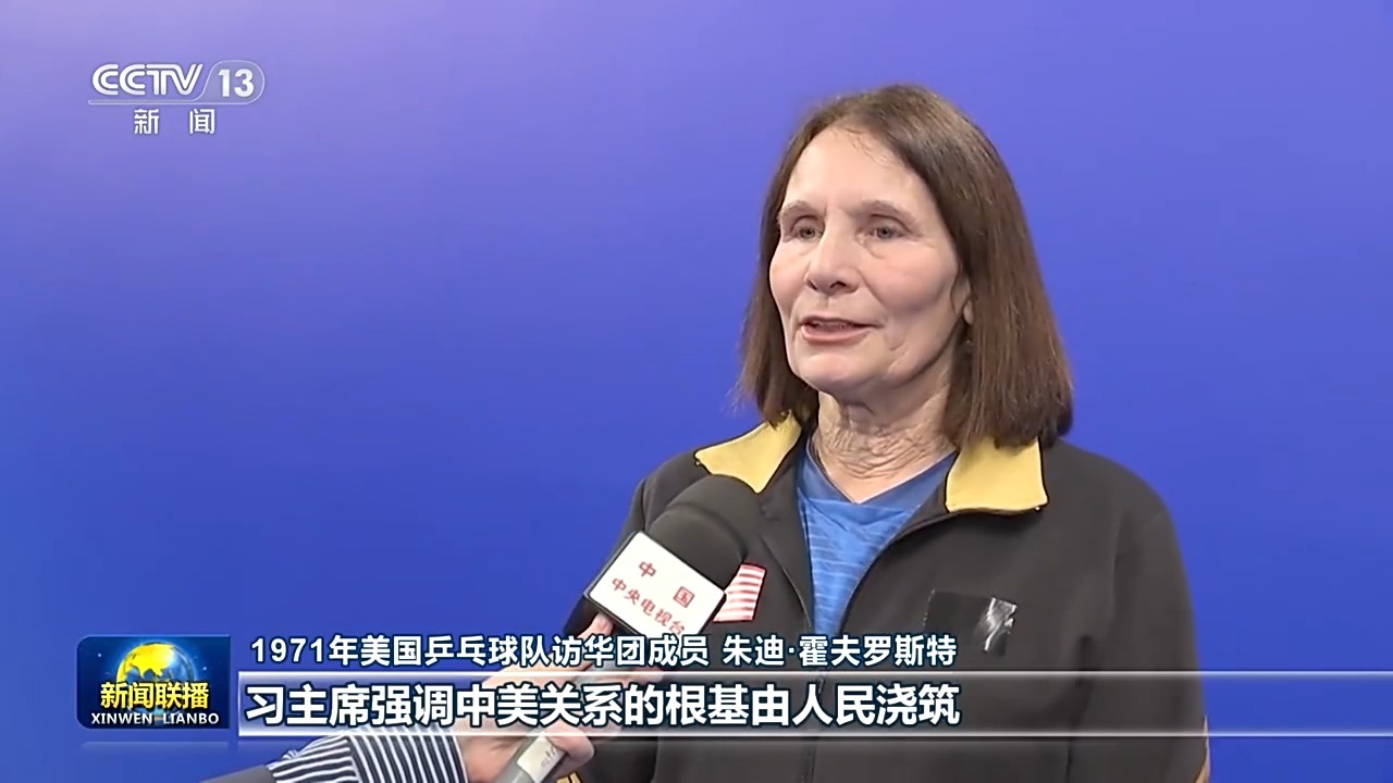 1971年美國(guó)乒乓球隊(duì)訪華團(tuán)成員 朱迪·霍夫羅斯特:習(xí)主席強(qiáng)調(diào)中美關(guān)系的根基由人民澆筑,這一點(diǎn)我深有感觸。在當(dāng)下,相互理解與對(duì)話比任何時(shí)候都更加重要,我也希望我們能將“乒乓外交”精神繼續(xù)傳承,在兩國(guó)人民間傳遞溫情,增進(jìn)理解。