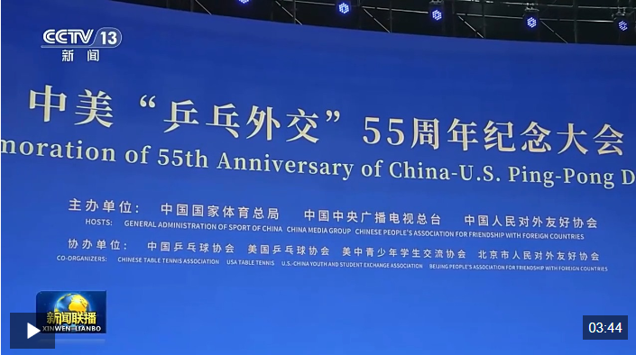 4月10日,習(xí)近平主席向中美“乒乓外交”55周年紀(jì)念大會(huì)暨中美青少年體育交流系列活動(dòng)啟動(dòng)儀式致賀信,高度評(píng)價(jià)“乒乓外交”的歷史和現(xiàn)實(shí)意義,鼓勵(lì)兩國(guó)各界人士特別是青年一代相知相親、攜手前行,為兩國(guó)關(guān)系注入強(qiáng)大動(dòng)力和溫暖能量。習(xí)近平主席的賀信在中美各界人士中引發(fā)熱烈反響。