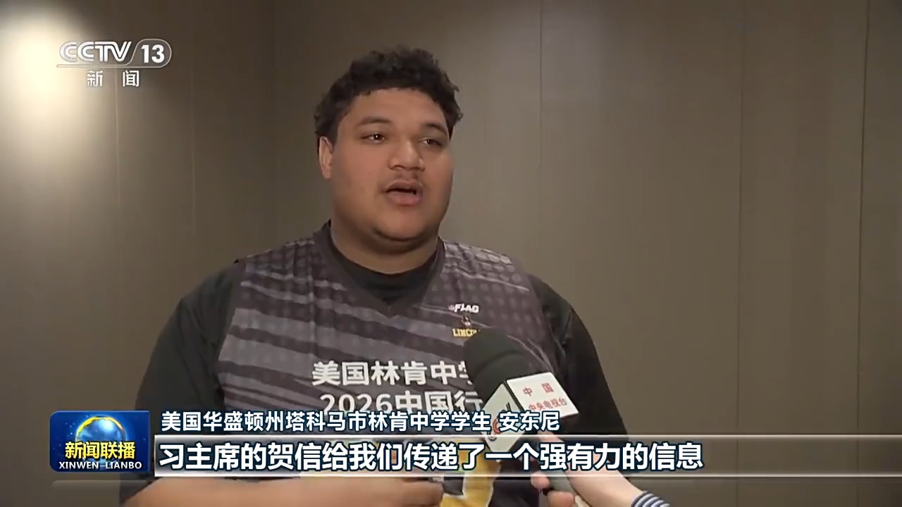 美國(guó)華盛頓州塔科馬市林肯中學(xué)學(xué)生 安東尼:習(xí)主席的賀信給我們傳遞了一個(gè)強(qiáng)有力的信息,讓我們堅(jiān)信彼此學(xué)習(xí)、相互理解就能讓人心貼得更近。我要把我親身體驗(yàn)所經(jīng)歷的一切,把我看到的真實(shí)的、充滿活力的中國(guó),講給我家鄉(xiāng)的朋友們聽。