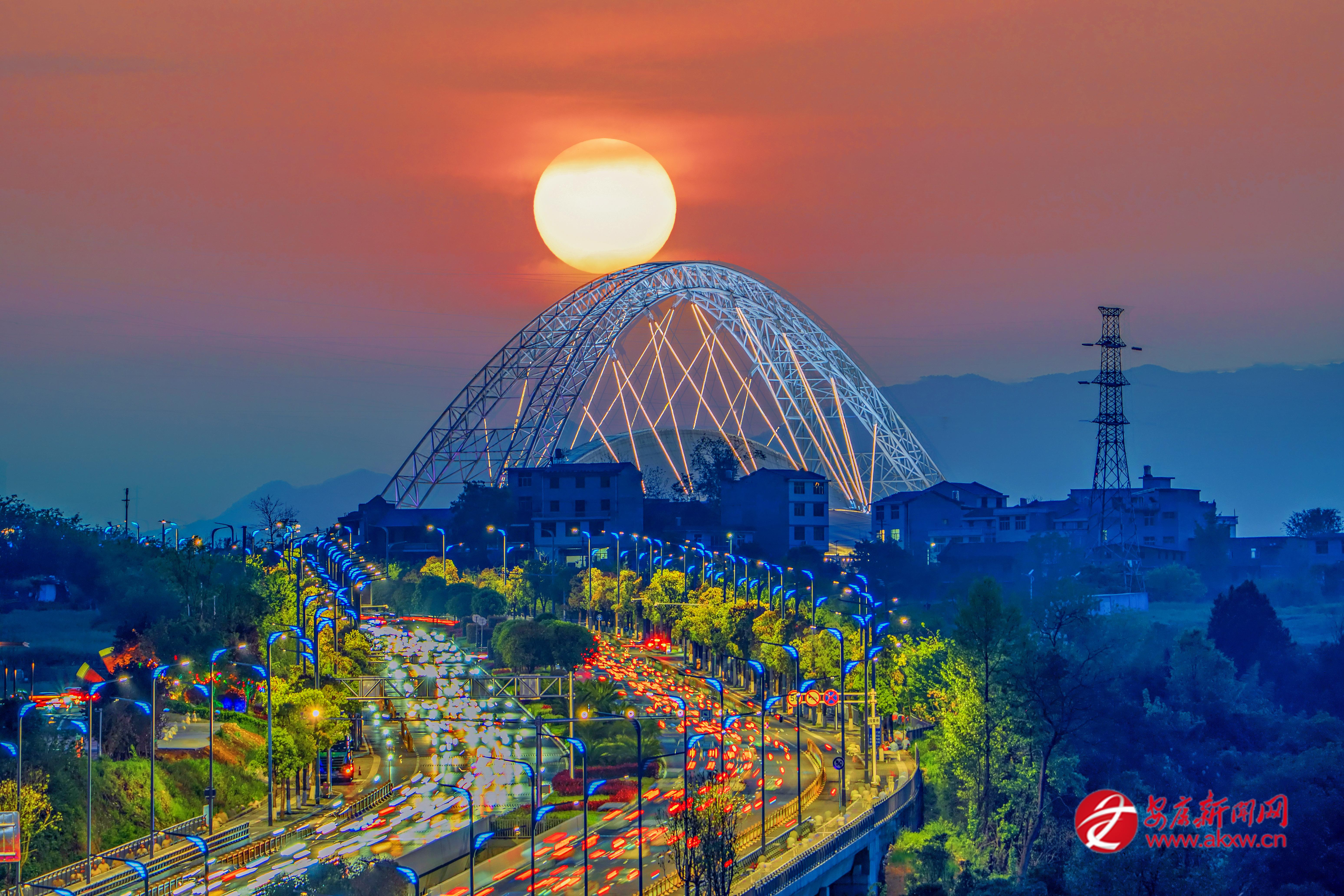 4月9日日落時(shí)分,安康市體育館外車流如織,一輪夕陽沉落于體育館穹頂之上,春日晚霞風(fēng)光令人沉醉。 皮勇維 攝