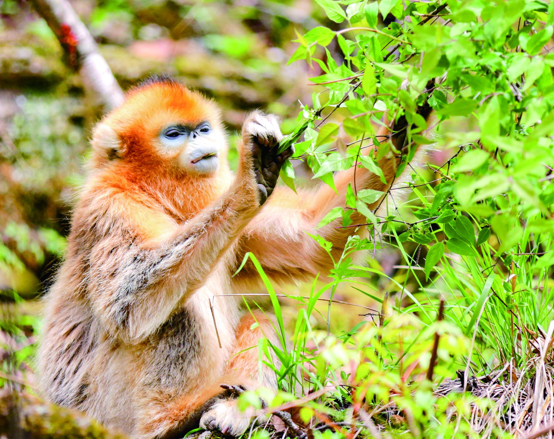 覓食中的川金絲猴