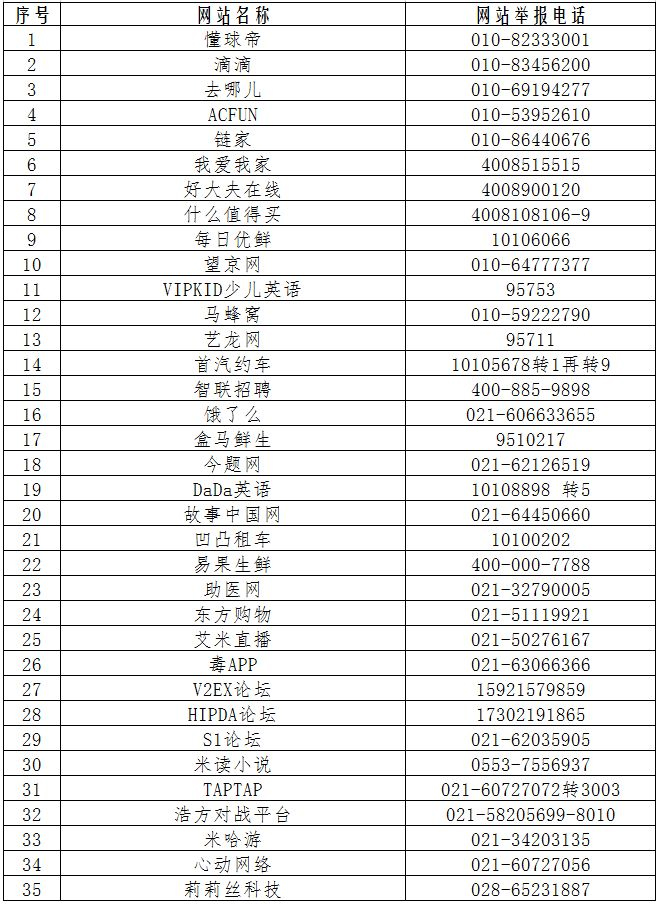 此次公布舉報(bào)受理方式的網(wǎng)站,既包括地方政府政務(wù)網(wǎng)站、地方新聞門戶網(wǎng)站、商業(yè)網(wǎng)站,又包括社區(qū)、論壇、微信公眾號(hào)等互動(dòng)平臺(tái),以及直播、游戲、APP應(yīng)用程序等互聯(lián)網(wǎng)應(yīng)用平臺(tái),內(nèi)容涉及生活服務(wù)、房屋租賃買賣、網(wǎng)約車、求職招聘、教育培訓(xùn)、旅游出行、小說文學(xué)、醫(yī)療服務(wù)等多個(gè)方面。其中,滴滴出行、首汽約車、去哪兒、途牛旅游等網(wǎng)民使用率較高的出行、旅游類應(yīng)用平臺(tái),鏈家地產(chǎn)、我愛我家等房屋交易類應(yīng)用平臺(tái),盒馬鮮生、餓了么等生活服務(wù)類應(yīng)用平臺(tái)在公布名單之列。